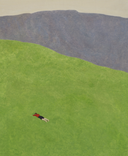 At (ir-)regular intervals, we pause amidst the routine and rush of everyday life. In sleep, we slip away from the linear flow of time, drifting into spaces filled with fragments of memories, emotions, and fleeting impressions. Dreams create room for vivid experiences without the need for precise recollection.The transition between sleep and wakefulness is a space where the unfamiliar and the familiar intertwine a moment of holding on to fragments that memory has not yet late fade. Each time we remember, the story shifts shaped by the vast opportunities that exist when no one else bears witness, leaving behind only a faint sensation or a lingering thought. Despertares places sleeping figures and the uncertain landscapes of their dreams at its core. Tiós distinctive visual language captures this fragile state, where reality and imagination merge, the familiar becomes abstract, and the boundaries between the tangible and the surreal blur. Dreams seem to hold endless possibilities for reshaping narratives, yet they slip away the moment we try to verbalize them. In much the same way as paintings resist being fully explained completed only in the gaze of the viewer.