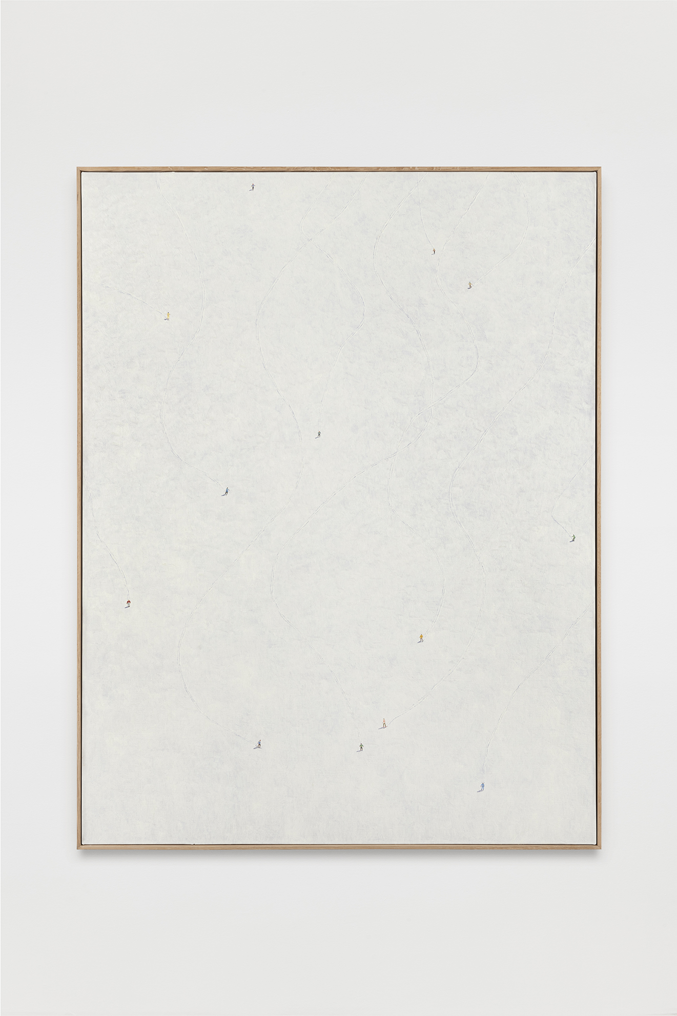 Small, indeterminate figures, not much more than mere contours, convey a sense of profound solitude in the face of the sublime and stoic nature that surrounds them. In the serenity of the landscapes a sound of silence is conveyed, that echoes in the uniqueness of one’s own memories. Inscribed in our imprints, they shape and form roots, that perpetually transform through time passing by.