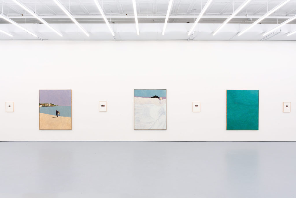 Ranging in size, from large format oil on canvas to miniature watercolour on photographs, some works contain close ups or portraits of figures without faces, transmitting a vague yet palpable presence.
